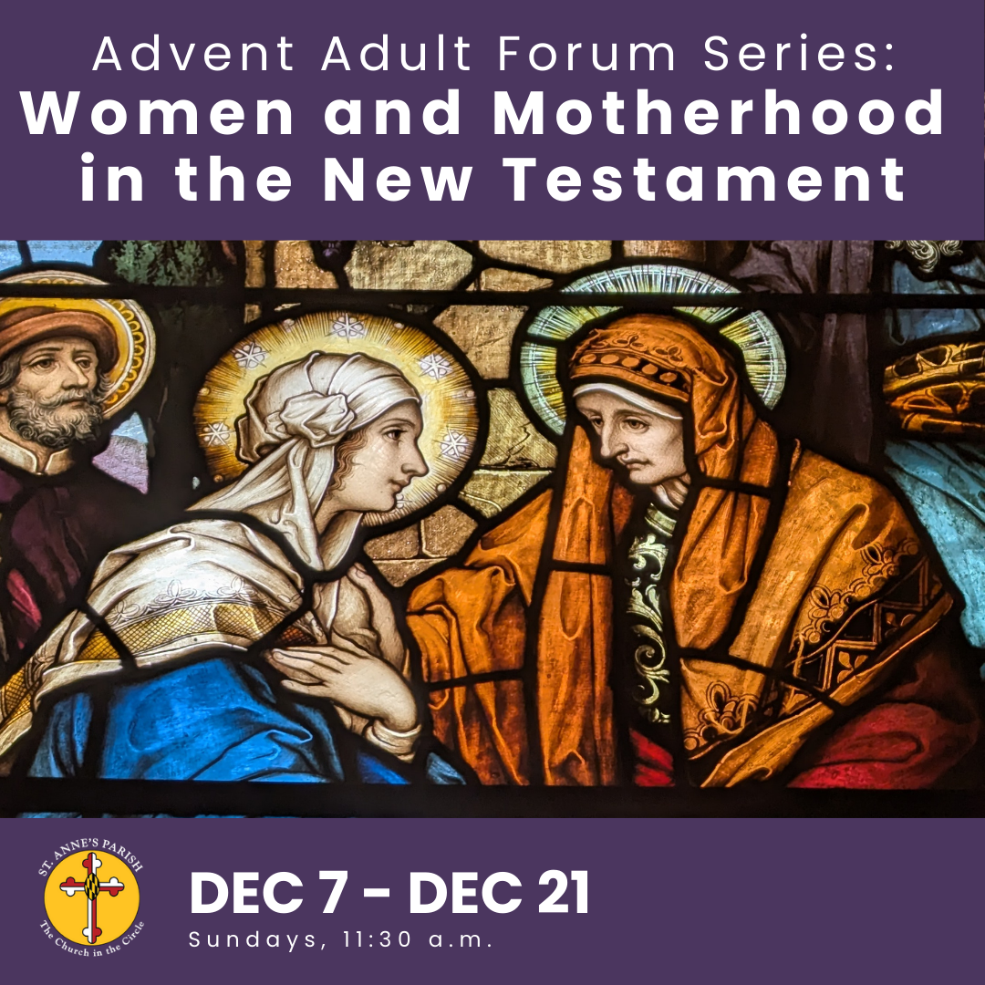 Join us at St. Anne’s this Advent season for a special Adult Forum Series exploring the profound role of women and motherhood in the New Testament. This series builds on our fall Women’s Bible Study and offers fresh insights for all who wish to deepen their understanding of Scripture. All are welcome!
