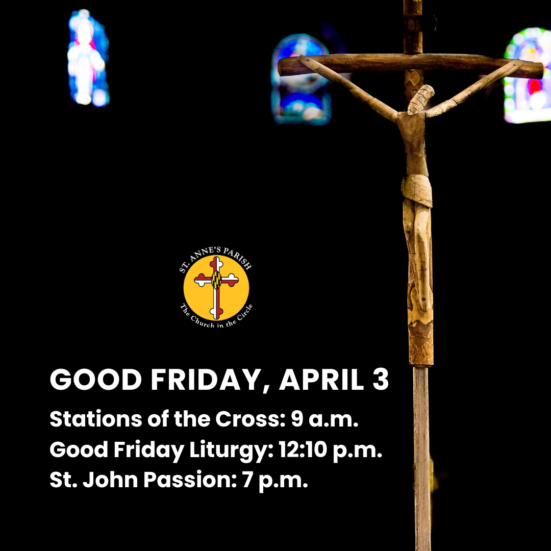 At 7 p.m., we listen to Bach’s St. John Passion. This is another telling of the full Passion, and J.S. Bach’s musical interpretation of the Gospel adds a level of depth and emotion as we process the death of Christ.